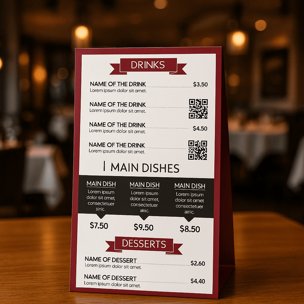 Ideales para promociones, menús o reseñas, ofrecen una imagen profesional, moderna y sostenible.