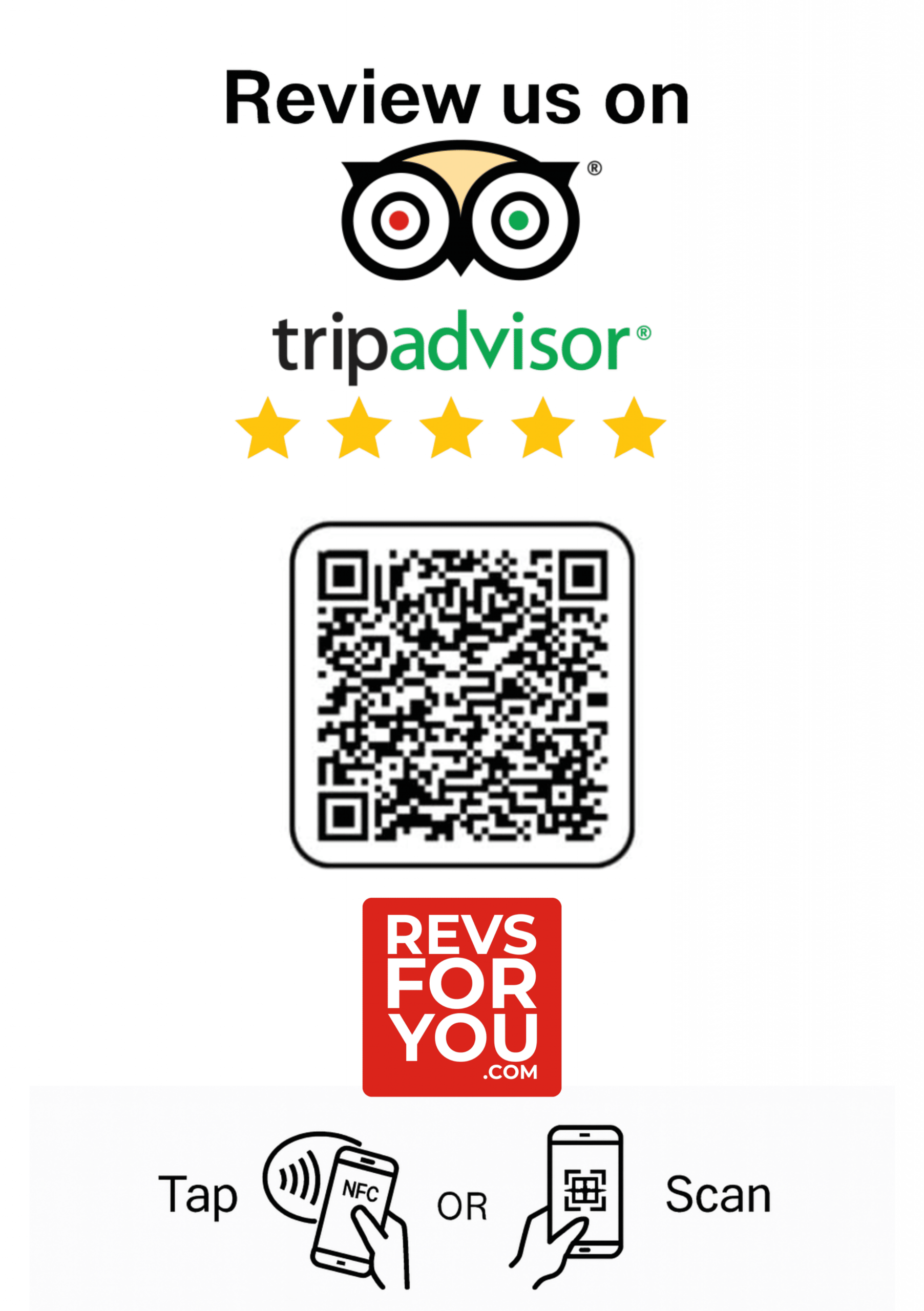 El Cartel NFC + QR Adhesivo Inteligente TripAdvisor Reviews de Revs For You está creado para