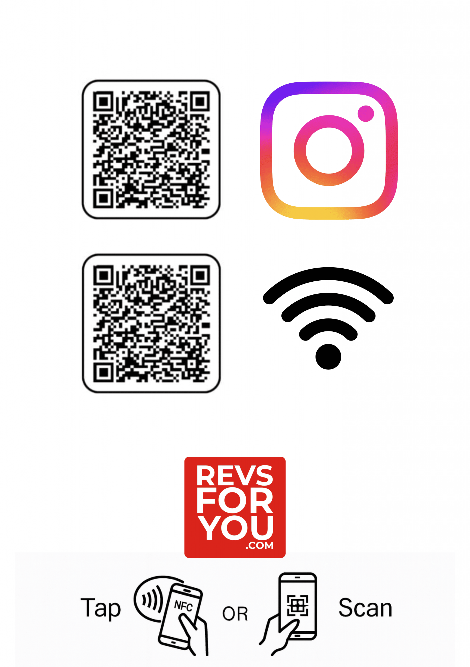 Cartel NFC + QR Doble Adhesivo Inteligente Instagram + WiFi — Revs For You