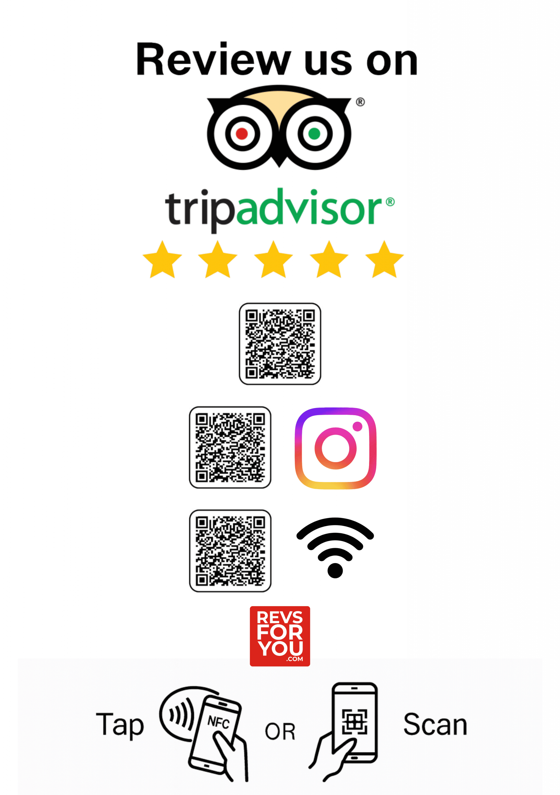Cartel NFC + QR Triple Adhesivo Inteligente TripAdvisor + Instagram + WiFi — Revs For You