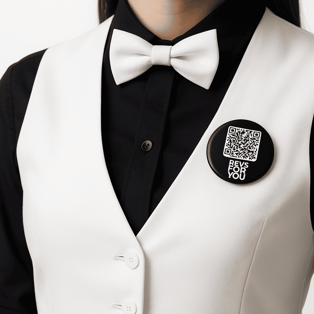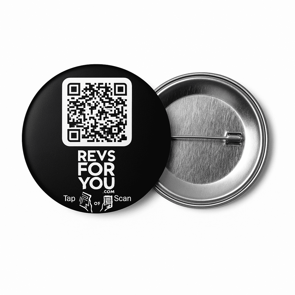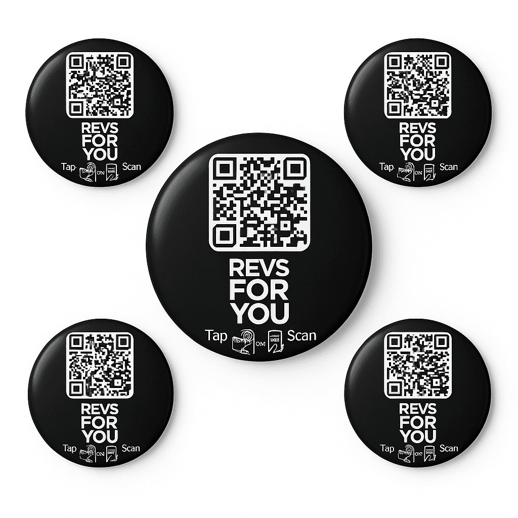 La Insignia Negra NFC + QR Inteligente de Revs For You está diseñada para que cualquier profesional o negocio pueda compartir su perfil de reseñas o redes sociales de forma inmediata.