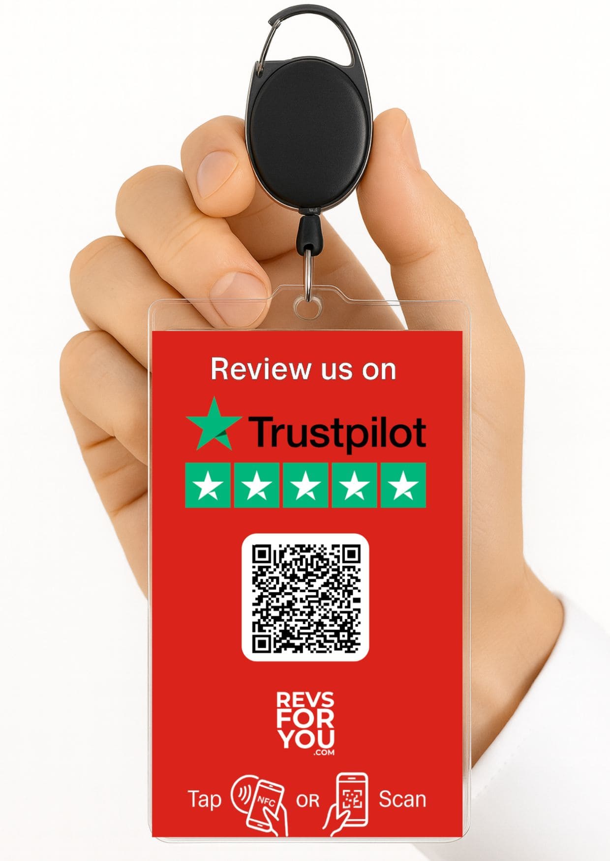 La Tarjeta NFC + QR Trustpilot Roja de Revs For You combina tecnología, diseño y resultados.