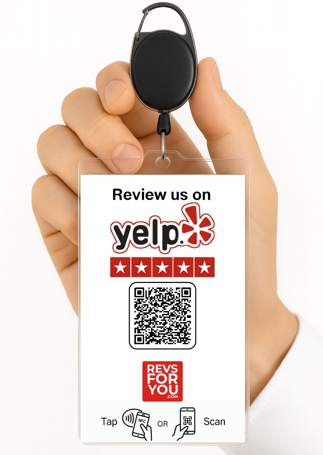La Tarjeta NFC + QR Yelp Blanca de Revs For You está diseñada para aumentar tus